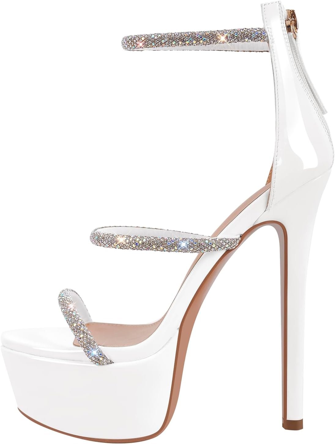 - Man-made, vegan-friendly material. Fashion platform sandals with rhinestones, back zip up strappy heels.
