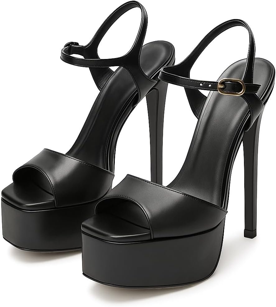 Women’s Stiletto Heeled Platform Sandals, Square Toe Open-Toe Ankle Strap High Heel Sandals, Prom Dress Shoes